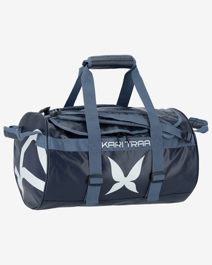 Kari 30L Bag de Kari Traa est un sac polochon de taille moyenne que vous pouvez utiliser comme bagage à main ou pour aller à la salle de sport. Conçu dans une matière résistante et imperméable en PVC et polyester, il comporte de nombreuses poignées et des bandoulières d'épaule molletonnées, de conception unique, qui permettent de le porter sur le dos. Les fermetures zippées sont ultra-résistantes et le sac dispose d'une poche sécurisée en mesh.
