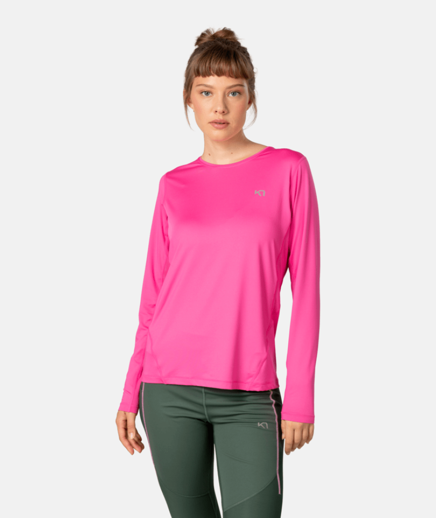 Le haut à manches longues Kari Traa Nora 2. Kontrastgewebe0 Longsleeve est la nouvelle version de notre couche de base pour femmes à la coupe regular. Désormais fabriqué avec un mélange de tissus légers produits à partir de matériaux recyclés, il est parfait pour vos entraînements quotidiens et vos activités de plein air. Il est entièrement stretch et sèche rapidement pour encore plus de confort.